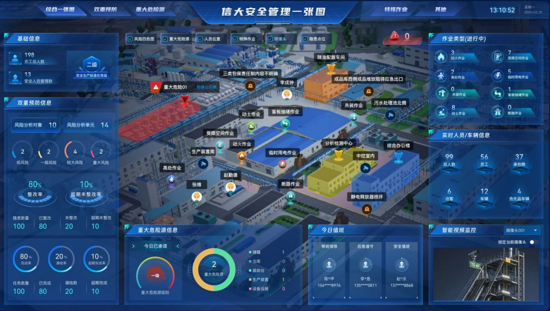 信大科技“工业互联网+安全生产”管理系统,通过“人防、技防、工程防、管理防”等综合安全措施构建安全管理新模式,实现工业生产过程中实时监测预警和风险分级管控。辅助管理者及各生产部门,将安全实时掌控在自己手里。